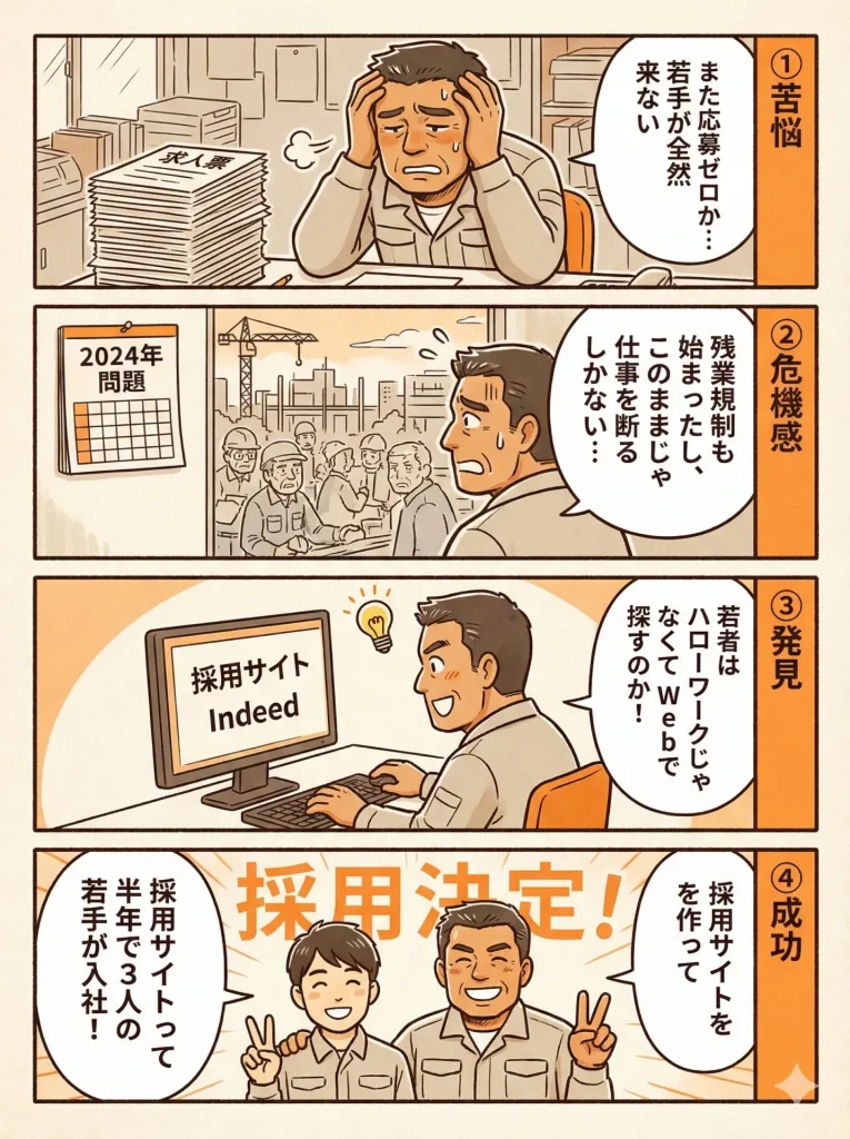 若手求職者の多くはスマホで情報収集しています。Googleで「須賀川 建設業 求人」と検索しても、魅力的な情報が出てこない会社は、そもそも選択肢に入りません。